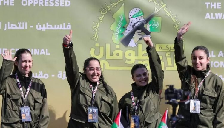 واستعرضت المقاومة المجندات الأربع وهن يرتدين الزي العسكري الصهيوني، على منصة في الميدان، وسط حضور جماهيري فلسطيني كبير، يعكس الدعم الشعبي للمقاومة.