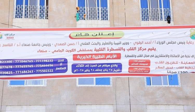 مركز القلب والقسطرة بمستشفى الكويت الجامعي بصنعاء يدشن المخيم المجاني الرابع