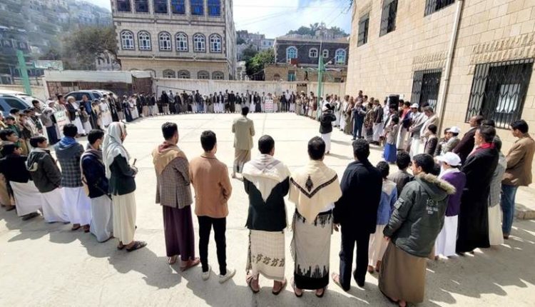 نظم منتسبو مكتب الشئون الاجتماعية والعمل وطلاب مدارس العلوم الشرعية للقرآن ودار الأيتام في حجة اليوم السبت ، وقفة للتنديد بمخططات العدو الصهيوني الأمريكي لتهجير أبناء الشعب الفلسطيني في غزة.