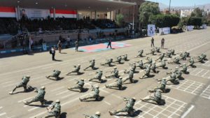 وقال الرويشان “إنه ومن خلال الجاهزيّة العسكرية والأمنية وتكثيف مهام الإعداد والتدريب واستمرار الحشد والتعبئة، نعاهد السيد القائد وأبناء الشعب اليمني، على أن تظل مؤسسة الدفاع والأمن على العهد والوفاء للقيادة، والثبات على موقف اليمن، ودعم وإسناد إخواننا المجاهدين في فلسطين”.