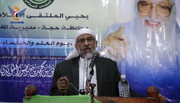 واستعرض جانبا من حياة العلامة المؤيدي ومسيرته الجهادية والعلمية ومواقفه الإيمانية، وتكريس حياته لنشر العلم النافع.