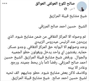 وعبر أحد أبرز مشايخ شبوة، حسين أحمد صالح المرزوقي، عن رفضه القاطع لتلك الإجراءات المهينة مع مجموعة من المشايخ برفضهم دخول قاعة المركز الثقافي أثناء تواجد الزبيدي.