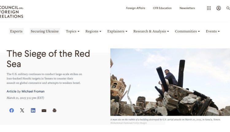 مجلس العلاقات الخارجية الأمريكي: “يشكل أنصار الله التحدي الأصعب للهيمنة البحرية للولايات المتحدة وحلفائها”