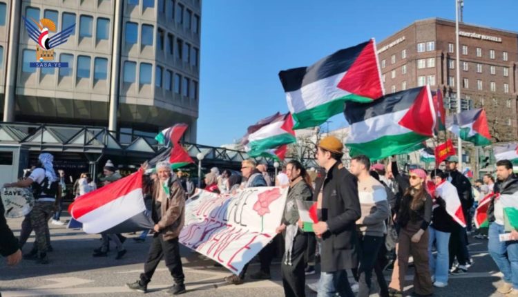 أفق نيوز | شارك أبناء الجاليتين اليمنية والفلسطينية في المانيا، السبت، في مسيرة حاشدة غاضبة شهدتها مدينة هامبروغ الألمانية بحضور نشطاء وحقوقيين ومتظاهرين ألمان، تحت شعار “كلنا من أجل غزة”.