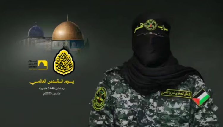 أفق نيوز | عُرضت ضمن فعاليات يوم القدس العالمي بصنعاء، كلمة مسجّلة للناطق باسم سرايا القدس، أبو حمزة، ناجي أبو سيف، كانت مخصصةً للمؤتمر الثالث لدعم فلسطين المحتلة، والذي أُقيم تحت عنوان “لستم وحدكم”، في العاصمة اليمنية.