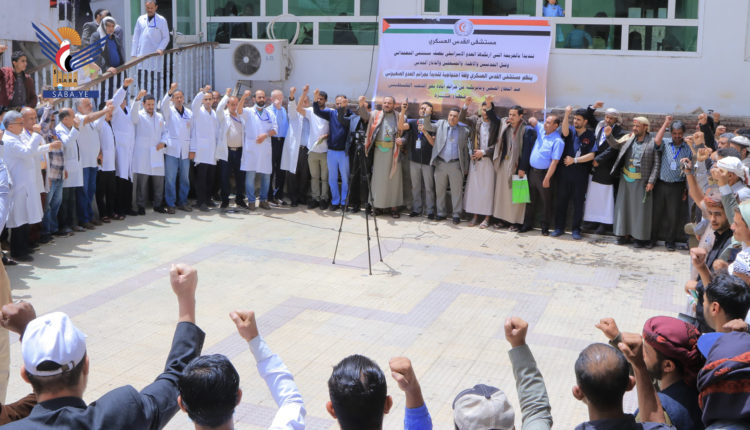 افق نيوز | نظم منتسبو مستشفى القدس العسكري اليوم، بصنعاء وقفة احتجاجية تنديدا بالجريمة التي ارتكبها العدو الاسرائيلي بقصف مستشفى المعمداني والمدنيين والأطباء والمسعفين وفرق الدفاع المدني وكافة جرائم العدو الصهيوني ضد القطاع الصحي في غزة.