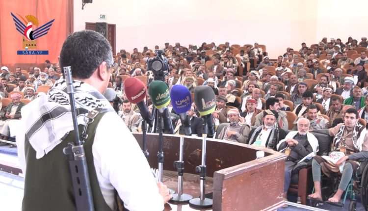 في حين أدان الشيخ علي الحيجنة في كلمة قبائل وصابين، العدوان الأمريكي على اليمن، معلنا تدشين الدفعة الـ 11 من “طوفان الأقصى” بثلاثة آلاف مقاتل.