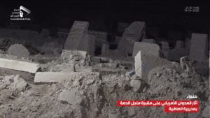 وفي تفاصيل مروعة تضاف إلى سجل جرائم الحرب الأمريكية، شهد يوم السبت الموافق 19 أبريل 2025م تصعيداً خطيراً في وتيرة الغارات على اليمن، علاوة على استهداف حرمة الأموات في مقبرة ماجل الدمة بمديرية الصافية، وفي مشهد يندى له الجبين، طالت الغارات مقبرة النجيمات بمديرية السبعين. كما استهدفت المقاتلات الأمريكية حي النهضة السكني بمديرية الثورة، لتسيل دماء الأبرياء وتزهق أرواح شهيدين وتترك جريحين مدنيين من أبناء الحي.