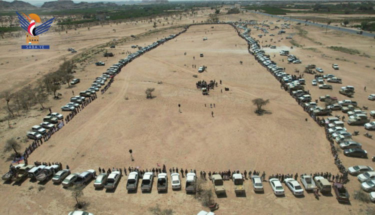 إلى ذلك خرج أبناء وقبائل الحمزات بمديرية سحار في وقفة قبلية، أعلنوا فيها إشهار وثيقة الشرف القبلية للتبرؤ من الخونة والعملاء، والتأكيد على استمرارهم في التعبئة والتصدي للعدوان الأمريكي.