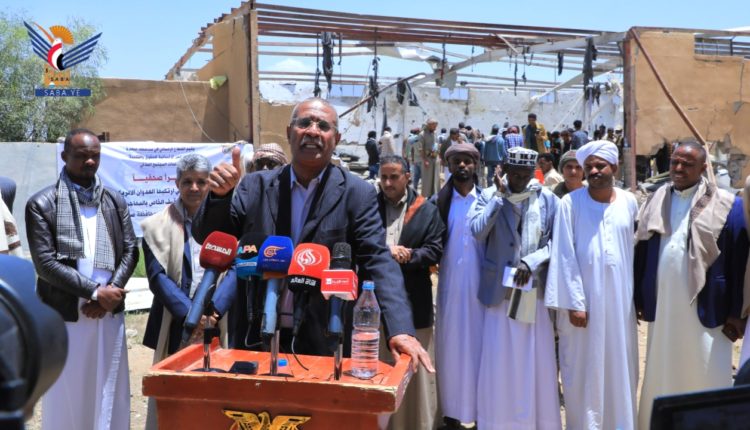 أفق نيوز | عُقد اليوم بمسرح جريمة العدوان الأمريكي بمركز إيواء المهاجرين في محافظة صعدة، مؤتمر صحفي للسلطة المحلية واللجنة الوطنية للاجئين ووزارة العدل وحقوق الإنسان ومنظمات المجتمع المدني والجاليات الأفريقية.