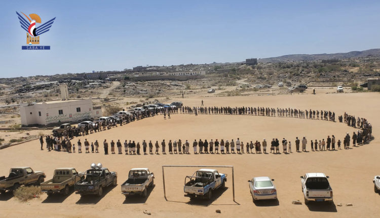 أفق نيوز | أعلن أبناء مديرية الطفة بمحافظة البيضاء اليوم، في وقفة قبلية مسلحة النفير العام والجاهزية لمواجهة العدوان الأمريكي واستمرار مناصرة الشعب الفلسطيني في قطاع غزة .