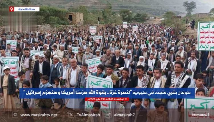 حجة.. مسيرات حاشدة دعمًا للشعب الفلسطيني واحتفاءً بهزيمة العدوّ الأمريكي