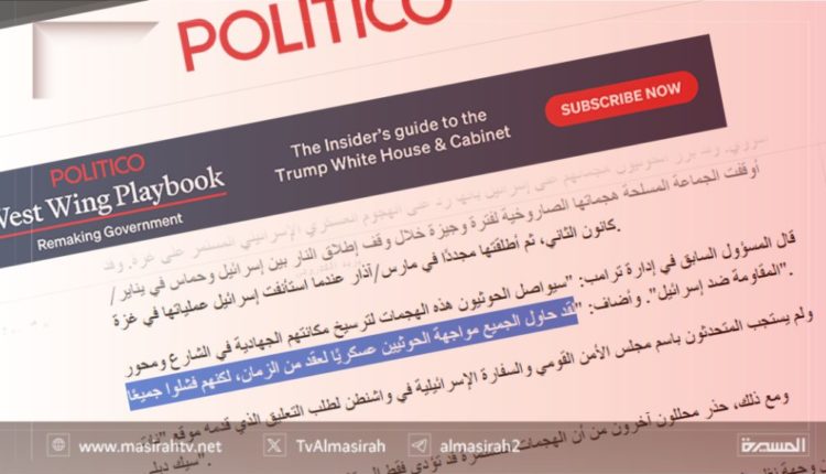 أفق نيوز| نقلت صحيفةُ “بوليتكو” الأمريكية عن مصادرَ في إدارة ترامب القول: لقد “حاول الجميعُ مواجهةَ اليمنيين عسكريًّا لعقدٍ من الزمان.. لكنهم فشلوا جميعًا”.