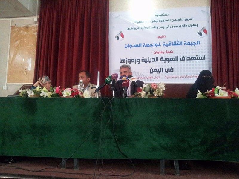 الجبهة الثقافية لمواجهة العدوان تنظم ندوة بعنوان” استهداف الهوية الدينية ورموزها في اليمن”