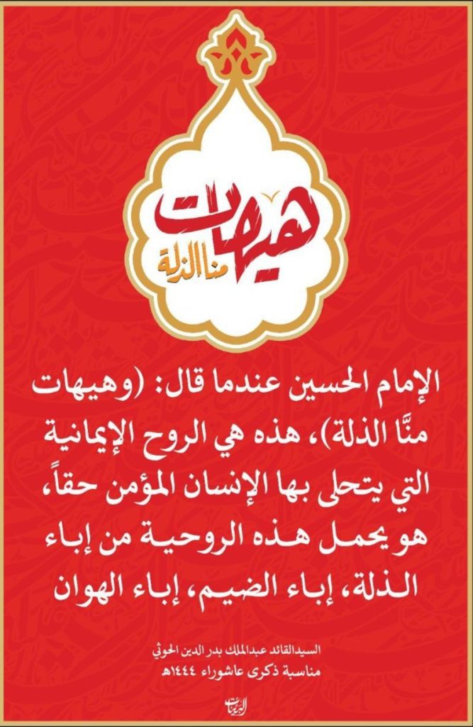 .ولقد صار الإمام الحسين اليوم قبلة اليمنيين أكثر من أي وقت مضى , باعتباره الملهم الذي يستمدون منه ثباتهم وانتصاراتهم, وهم يصرخون وإلى جانبهم أحرار العالم بصرخته المدوية في الآفاق وعلى مر العصور (هيهات منا الذلة)