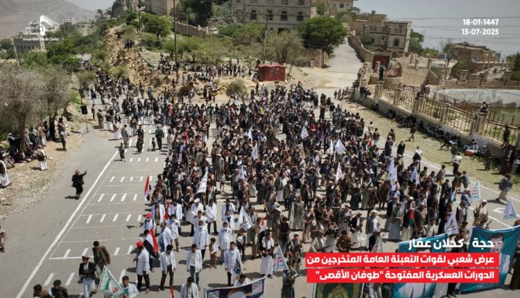 كحلان عفار بحجة تشهد عرضًا شعبيًّا لأكثر من ألفي مقاتل من خريجي الدورات العسكرية المفتوحة