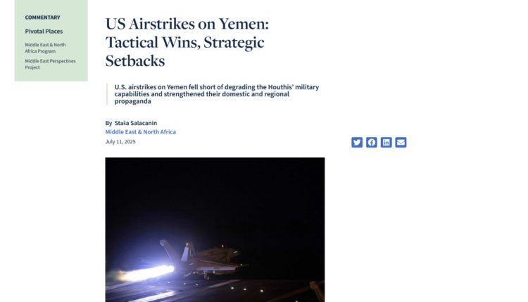 نشر موقع “Stimson” مقالًا للكاتبة باربرا سلافين، سلّطت فيه الضوء على الانتكاسات الاستراتيجية التي لحقت بالولايات المتحدة جراء عدوانها الجوي على اليمن، رغم محاولات واشنطن تقديم حملتها كنجاح تكتيكي ضد ما تسميه “التهديد الحوثي”.