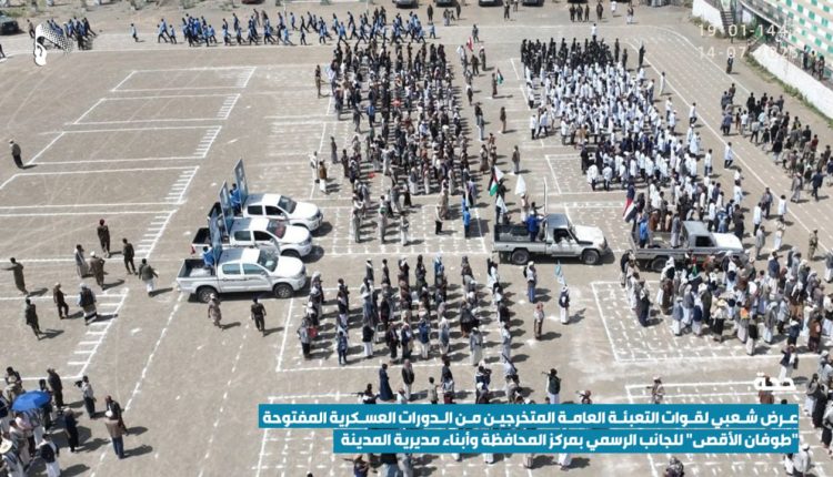 عرض شعبي لخمسة آلاف مقاتل من خريجي دورات التعبئة بمحافظة حجة
