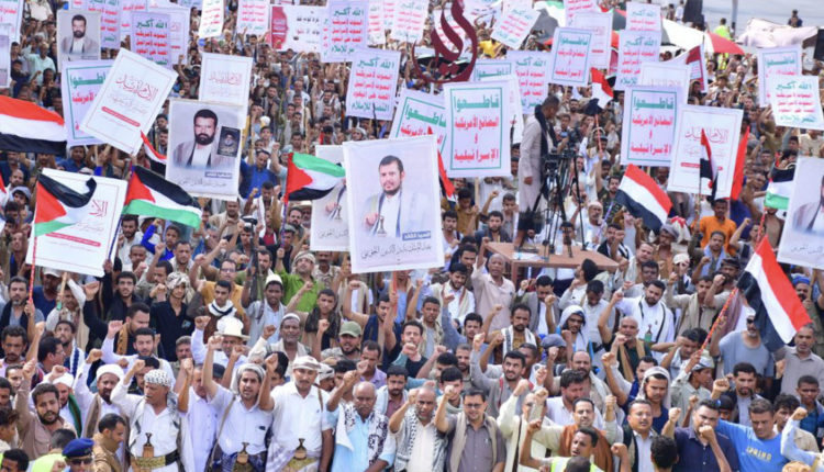 وأكدت الحشود أن اليمن، بقيادته وجيشه، يضرب اليوم المثل الأعلى في الصمود والنصرة، وهو يواجه العدوان والحصار منذ عشرة أعوام، ويصنع نصرا مشهودا لصالح الأمة، بينما تتنصل كثير من الأنظمة عن نصرة فلسطين.