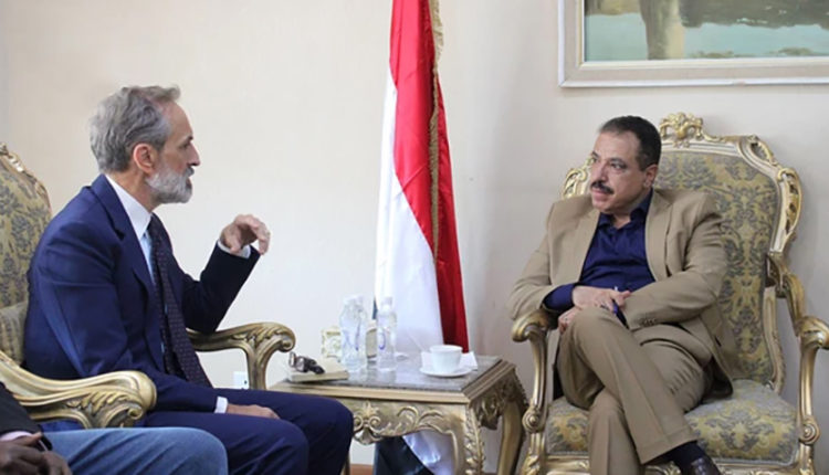 التقى وزير الخارجية والمغتربين، جمال عامر، اليوم الثلاثاء، المنسق المقيم للأمم المتحدة – منسق الشؤون الإنسانية في اليمن جوليان هارينس.