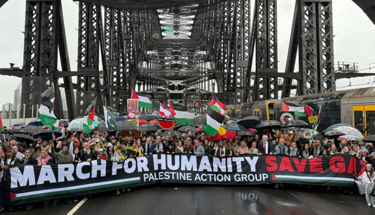 شارك آلاف المتظاهرين اليوم الأحد في مسيرة حاشدة فوق جسر هاربور الشهير في مدينة سيدني الأسترالية، دعماً للشعب الفلسطيني المحاصر في قطاع غزة وتنديداً باستمرار العدوان الإسرائيلي وما خلّفه من أزمة إنسانية غير مسبوقة.