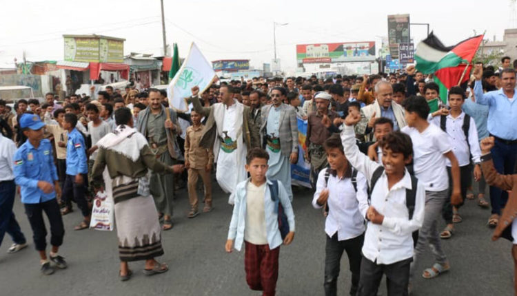 مسيرات طلابية في التعزية وماوية وشرعب السلام بتعز تضامنا مع أطفال غزة