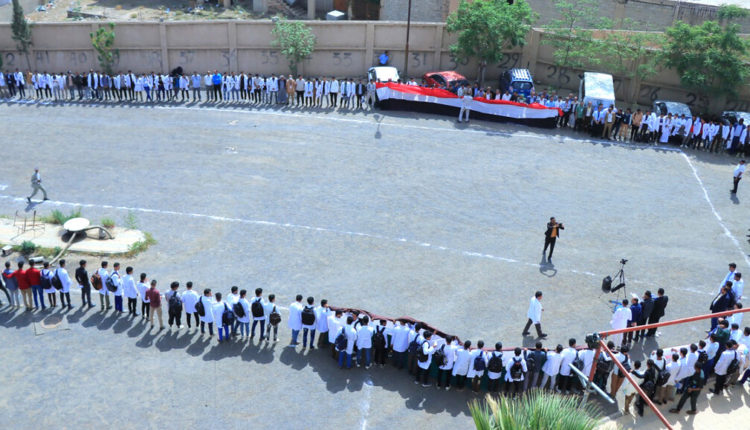 نظمت جامعة 21 سبتمبر للعلوم الطبية والتطبيقية بمحافظة صنعاء اليوم الأربعاء، وقفتين، تنديداً بجرائم التجويع والإبادة الجماعية التي يرتكبها الكيان الصهيوني بحق سكان غزة، ومباركة للمرحلة الرابعة من التصعيد.