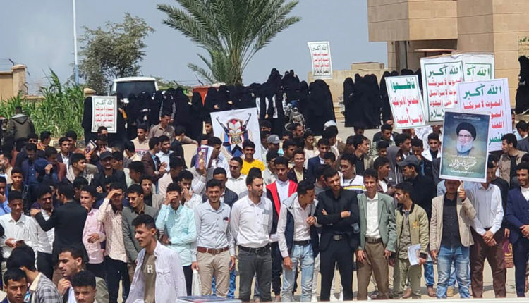 مسيرة لطلاب جامعة المحويت نصرة للشعب الفلسطيني