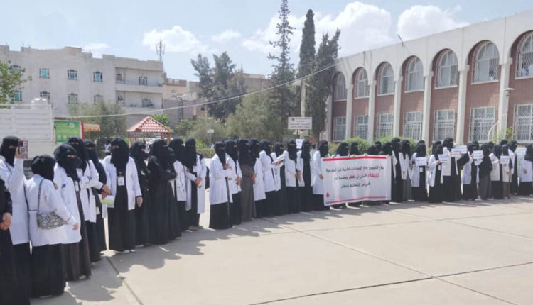 وقفة لكوادر مستشفى السبعين وبنك الدم بالأمانة نصرة لغزة