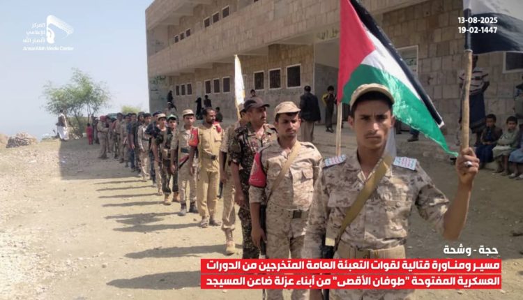 نظمت التعبئة العامة في وشحة محافظة حجة عرضا ومسيرا لعدد من خريجي دورات طوفان الأقصى.
