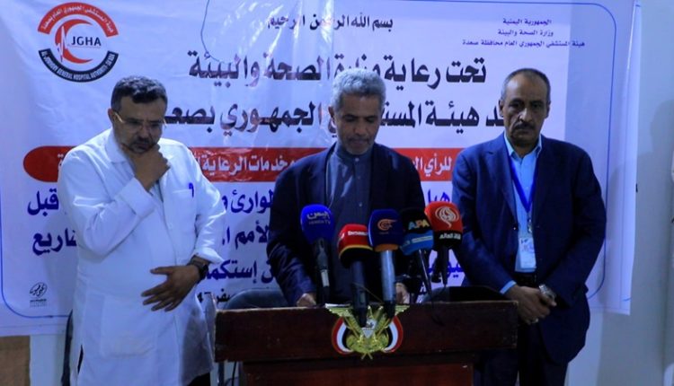 عقدت وزارة الصحة والبيئة وهيئة المستشفى الجمهوري بمحافظة صعدة، اليوم الثلاثاء، مؤتمراً صحفياً للحديث عن انسحاب الأمم المتحدة من مشروعات إعادة تأهيل أقسام المستشفى.