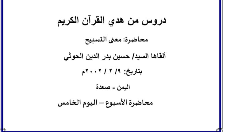 محاضرة الأسبوع – معنى التسبيح (اليوم الخامس)