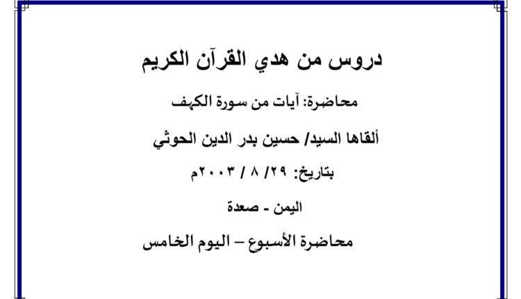 محاضرة الأسبوع – آيات من سورة الكهف (اليوم الخامس)