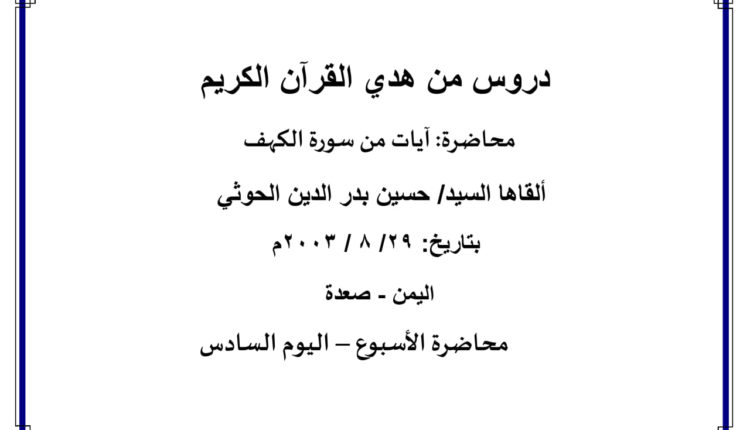 محاضرة الأسبوع – آيات من سورة الكهف (اليوم السادس)