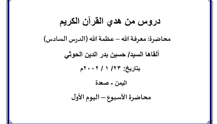 محاضرة الأسبوع – معرفة الله- عظمة الله- الدرس السادس (اليوم الأول)
