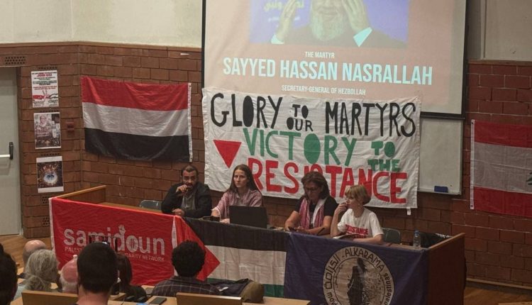 نظّمت مجموعة من القوى والمنظمات الشعبية والنسوية بالعاصمة اليونانية أثينا ندوة سياسية برعاية حركة المسار الثوري الفلسطيني البديل وجبهة مناهضة الإمبريالية في اليونان، إحياءً للذكرى السنوية الأولى لشهيد الإنسانية السيد القائد حسن نصر الله.