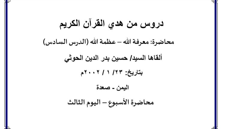 محاضرة الأسبوع – معرفة الله- عظمة الله- الدرس السادس (اليوم الثالث)