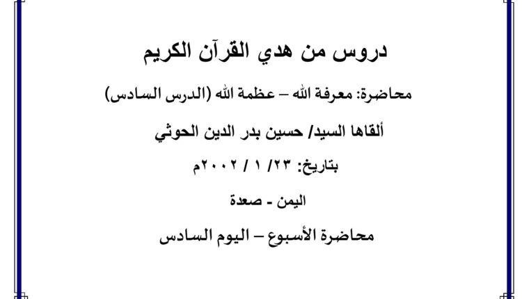 محاضرة الأسبوع – معرفة الله- عظمة الله- الدرس السادس (اليوم السادس)