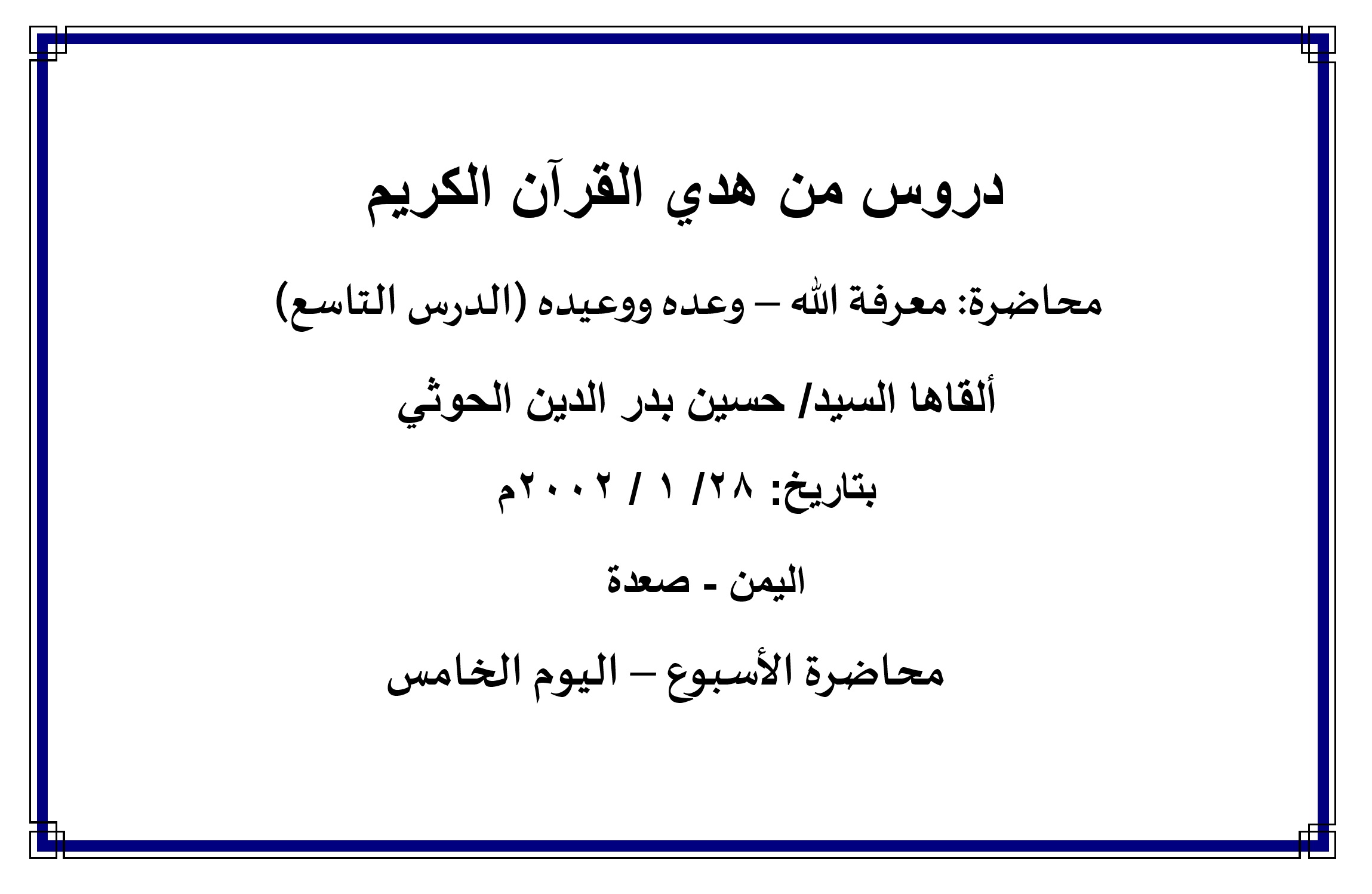محاضرة الأسبوع – معرفة الله- وعده ووعيده- الدرس التاسع (اليوم الخامس)