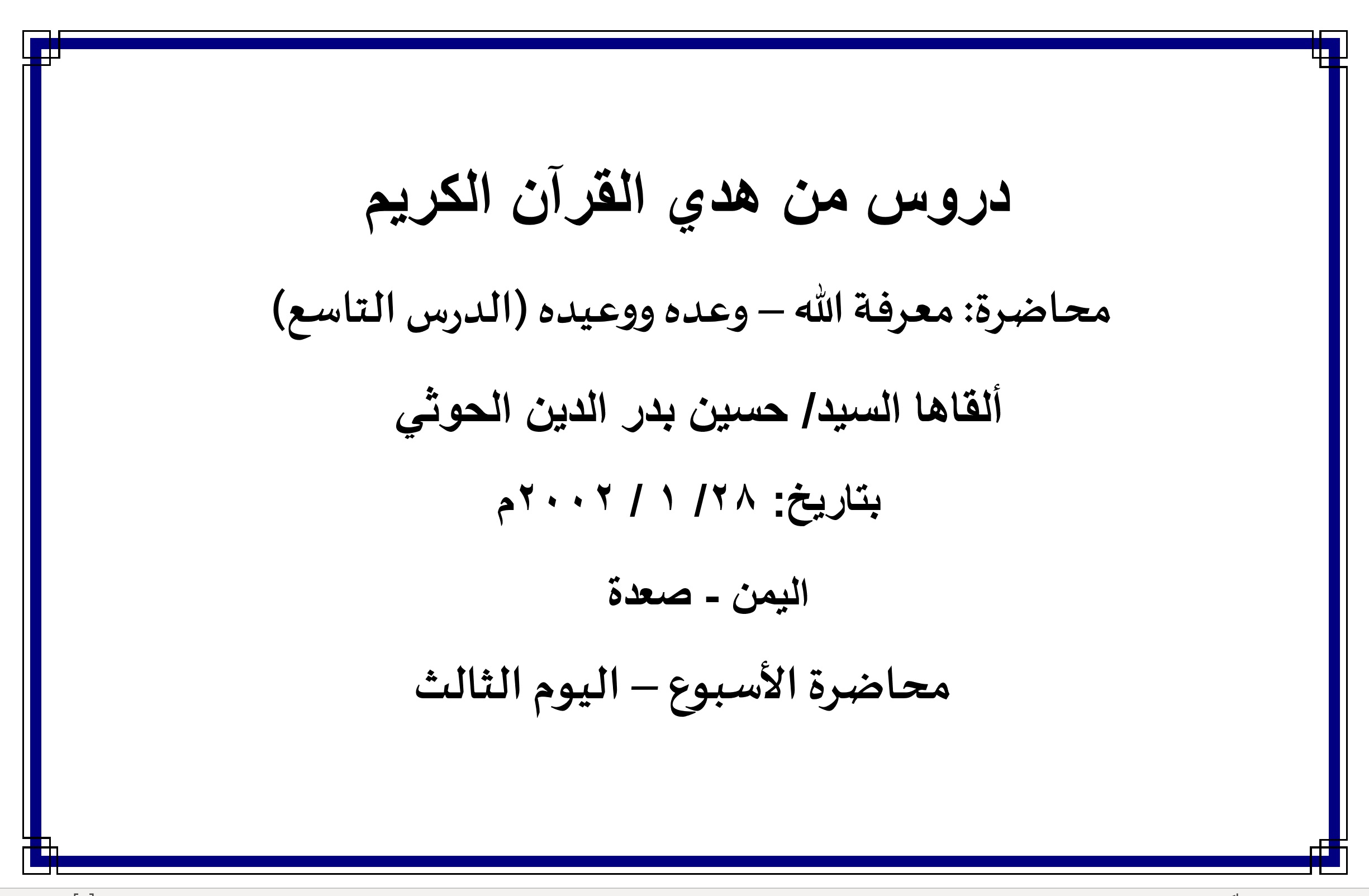 محاضرة الأسبوع – معرفة الله- وعده ووعيده- الدرس التاسع (اليوم الثالث)