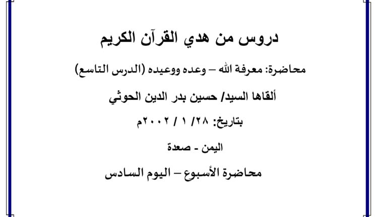 محاضرة الأسبوع – معرفة الله- وعده ووعيده- الدرس التاسع (اليوم السادس)