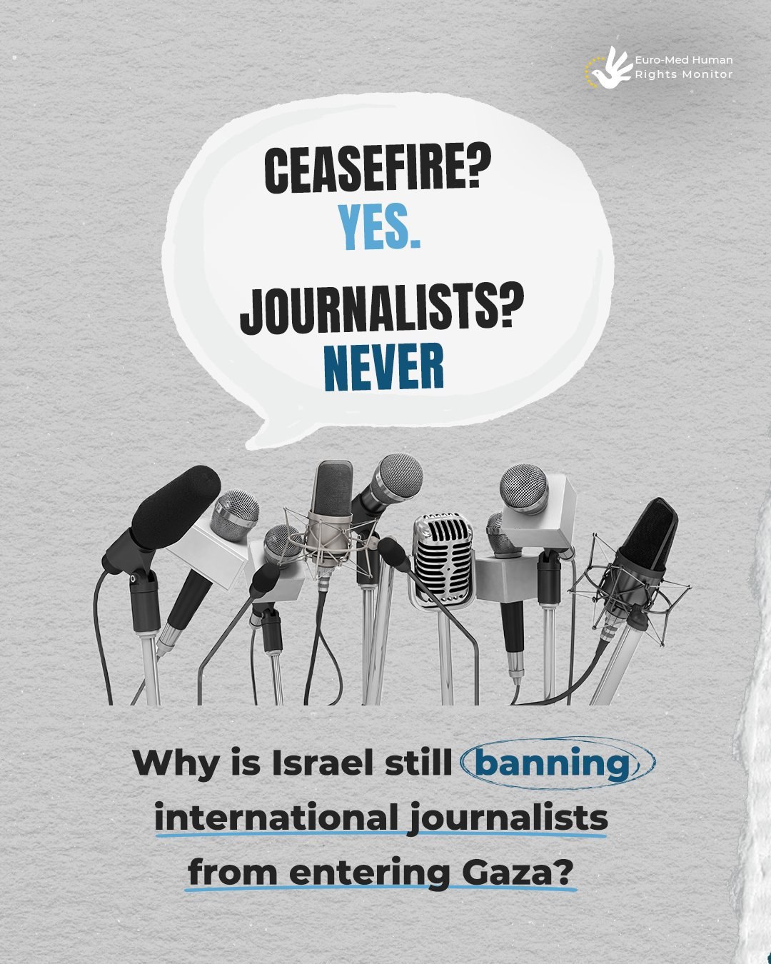 قال المرصد الأورومتوسطي لحقوق الإنسان، اليوم الأحد، إن “إسرائيل” تمنع الصحفيين الدوليين من دخول غزة، بهدف محو الأدلة وإسكات أي صوت قد يكشف الانتهاكات والجرائم المرتكبة.