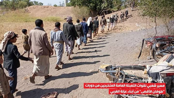 نظمت قوات التعبئة العامة من أبناء عزلة الغربي بمديرية القفلة في محافظة عمران مسيرة شعبية حاشدة، احتفالاً بتخرج دفعة جديدة من دورات “طوفان الأقصى”.