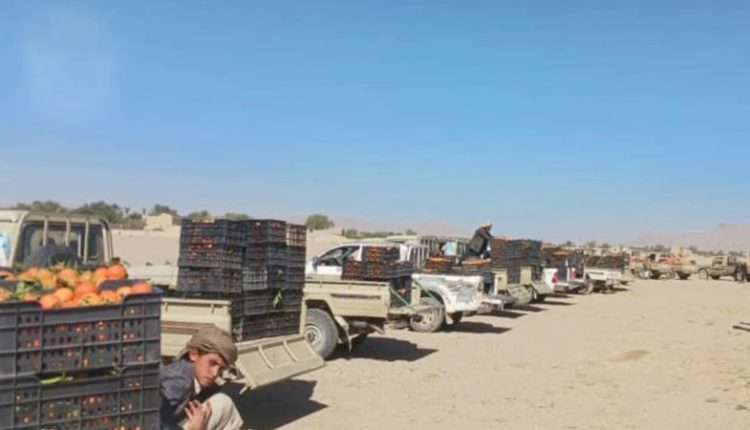 سير أبناء مديريات المتون والمطمة والزاهر في محافظة الجوف، قافلة من فاكهة البرتقال دعماً واسنادا للمرابطين في جبهات صحراء المحافظة والمرابطين من القوات البحرية.