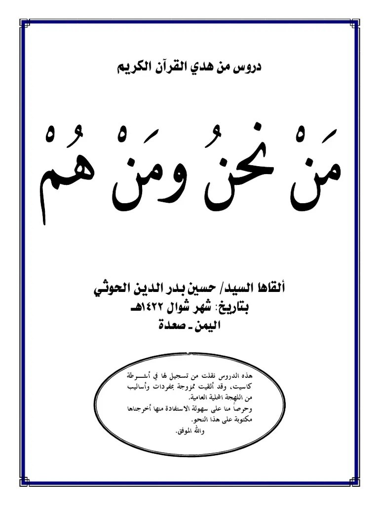 القرآن الكريم يركز على هذه الأشياء كمقاييس؛ لأنه أحيانا قد يبدو عدوك وكأنه ناصح لك, كأنه ناصح لكن إذا كنت تعرف من هو ستكون يقظاً.