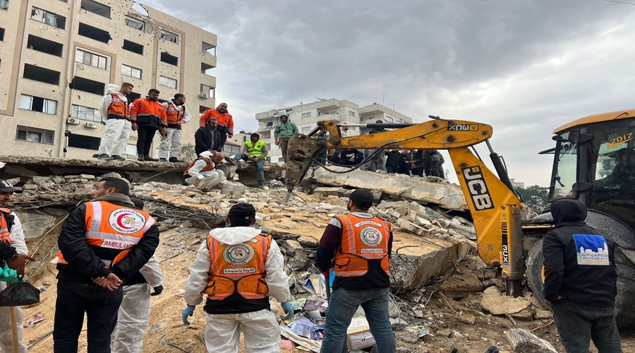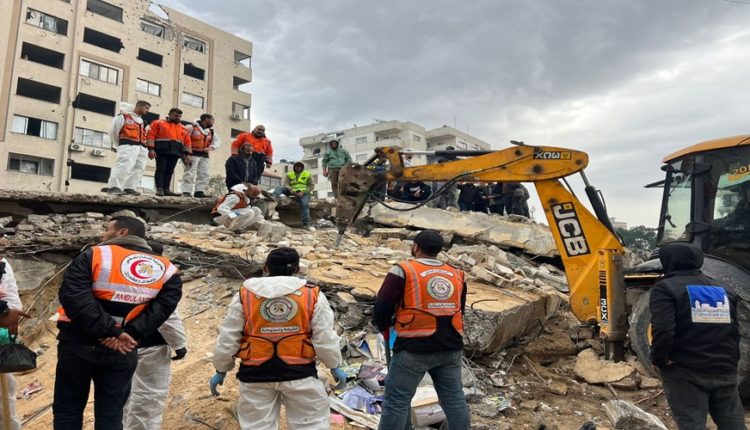 وتواصل طواقم الدفاع المدني والجهات المختصة جهودها لانتشال جثامين الشهداء من تحت أنقاض المباني والمنازل التي دمّرها جيش الاحتلال الصهيوني فوق ساكنيها خلال حرب الإبادة الجماعية والتطهير العرقي.