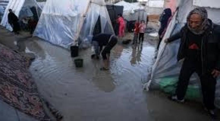 أوضاع مأساوية للنازحين في غزة بعد غرق خيامهم بسبب المنخفض الجوي
