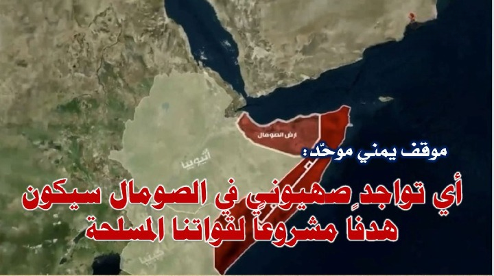 موقف يمني موحّد: أي تواجد صهيوني في الصومال سيكون هدفًا مشروعًا لقواتنا المسلحة
