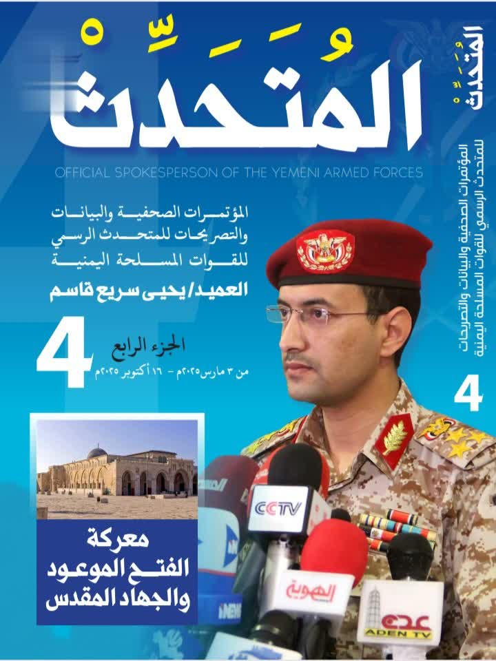 أصدرت دائرة التوجيه المعنوي للقوات المسلحة اليمنية، أمس السبت، الجزء الرابع من كتاب المتحدث الرسمي للقوات المسلحة في صنعاء العميد يحيى سريع، موثقةً من خلاله أبرز عمليات الجيش اليمني المساندة لغزة خلال المرحلة الثانية من معركة “الفتح الموعود والجهاد المقدس” الممتدة من 13 مارس حتى 16 أكتوبر 2025م.