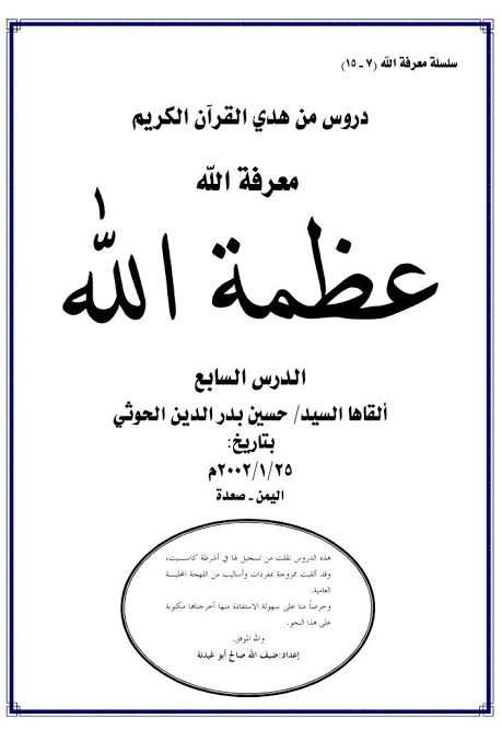 استشعار عظمته في نفوسنا أن تملأ عظمته نفوسنا،هذه قضية مهمة، قضية مهمة، ولا شيء يمكن أن يمنحنا هذا الشعور سوى القرآن الكريم فيما يعرضه من أسماء الله الحسنى، ومعانيها، ومظاهرها، وما فيها من شهادة بكمال الله سبحانه وتعالى.